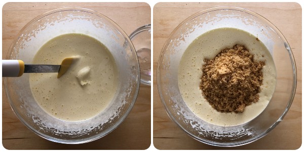 Em seguida, adicione a manteiga e as avelãs trituradas.
