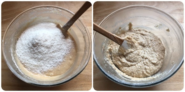Adicione também o coco ralado e misture perfeitamente.