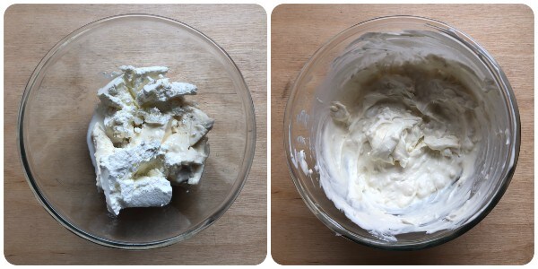 Em uma tigela, coloque o gorgonzola, a robiola, o leite e misture vigorosamente até que estejam bem integrados.