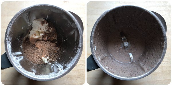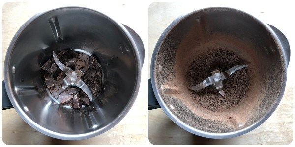 Colocar no copo o chocolate em pedaços e triturar finamente (10/15 seg. vel 6). Reservar.