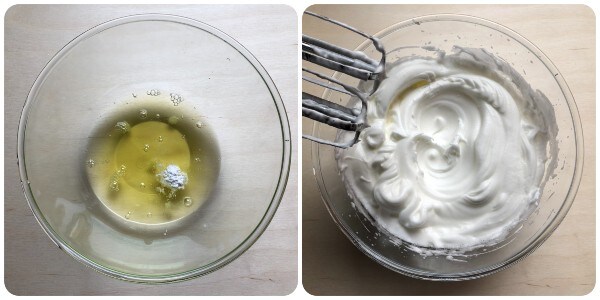 Adicione uma pitada de cremor tártaro às claras e bata em neve firme com a batedeira elétrica. Reserve. Clique AQUI se você quiser saber mais sobre o efeito do cremor tártaro, utilizado no lugar da clássica pitada de sal.
