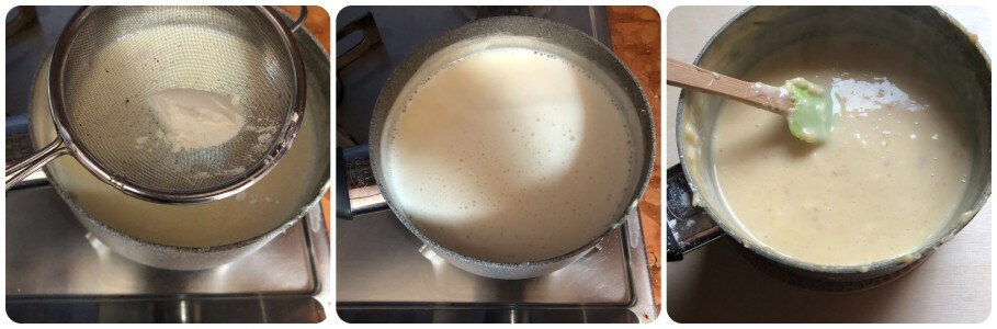 Também adicione o amido de milho peneirado e continue o cozimento até que a mistura tenha engrossado um pouco. Serão necessários cerca de 10/12 minutos durante os quais é necessário mexer com frequência.