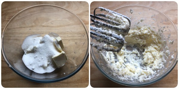 • Em uma tigela, coloque o açúcar com a manteiga amolecida à temperatura ambiente ou passada por alguns segundos no micro-ondas. Não deve estar derretida, apenas macia.