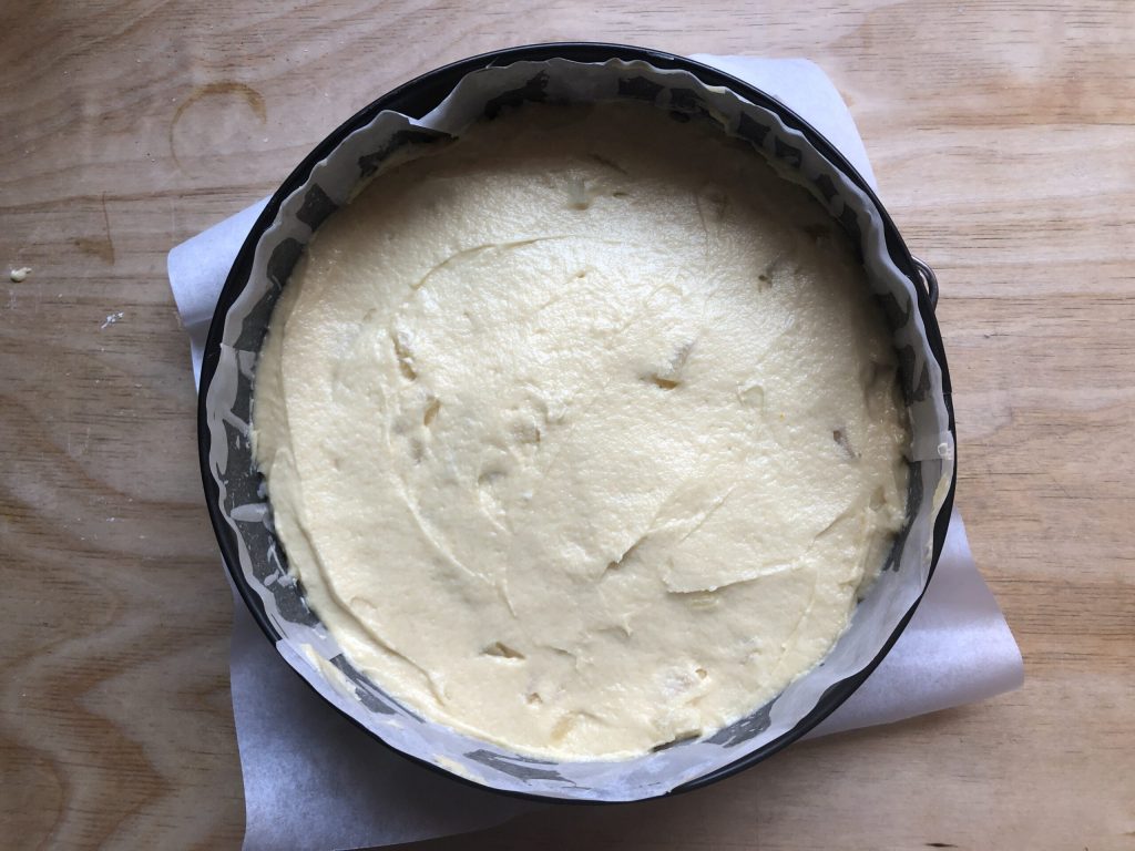 • Despeje a massa na forma sobre as fatias de abacaxi e nivele bem.