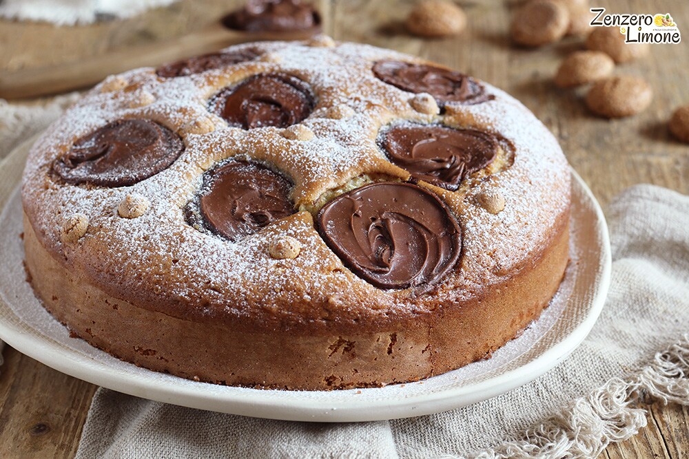 Asse o bolo Nua com Nutella e amaretti em forno estático pré-aquecido a 170°C por cerca de 35 minutos, cobrindo-o nos últimos 10 minutos de cozimento se a superfície começar a dourar demais.