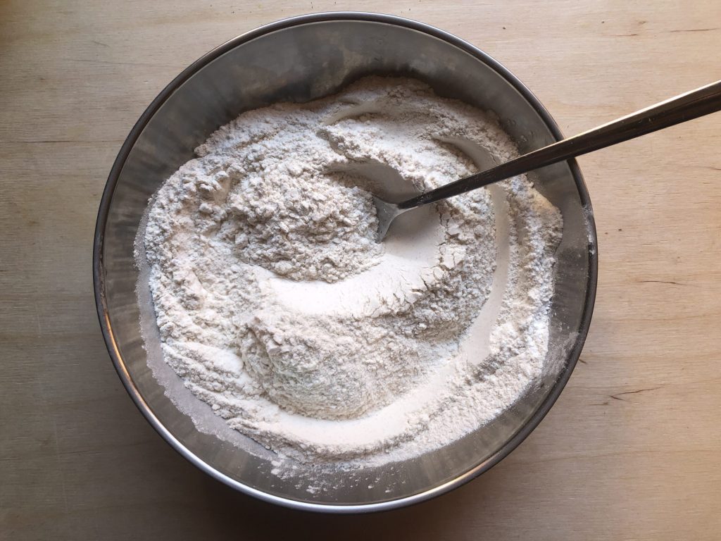 • Misture tudo com a batedeira elétrica e comece a adicionar gradualmente a mistura de farinha e fermento, peneirando-a através de uma peneira de malha fina.