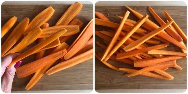 Corte as pontas das cenouras, raspe-as, lave-as e seque com papel toalha.