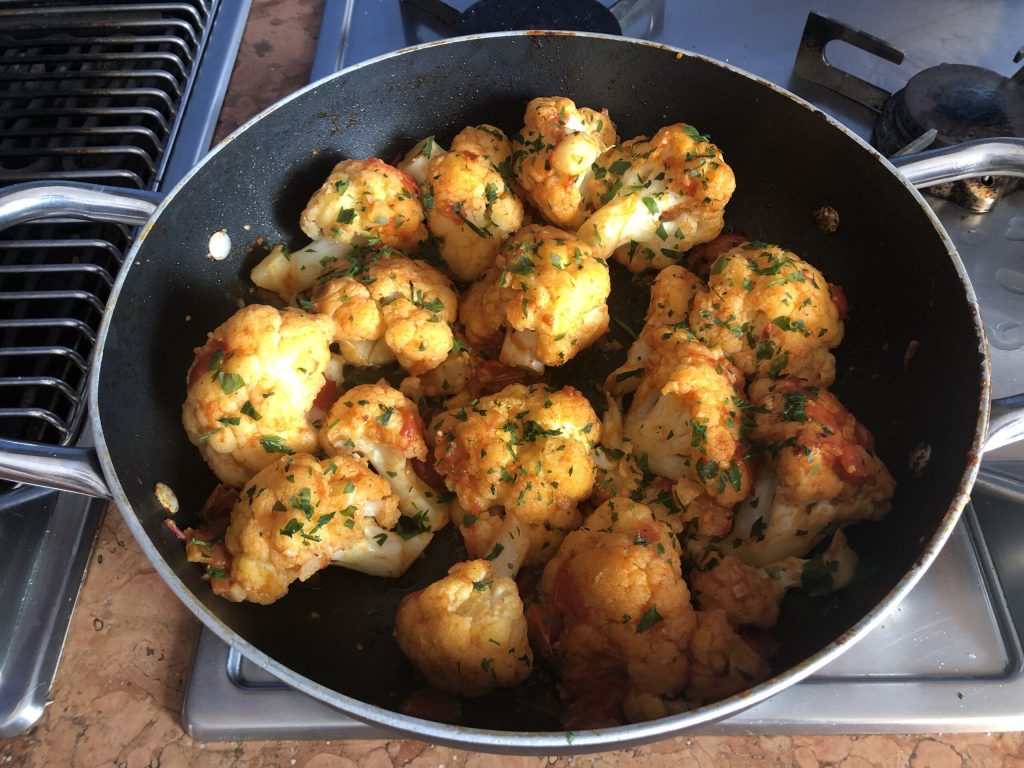 Ao final do cozimento, polvilhe a couve-flor com salsinha picada finamente e sirva imediatamente, bem quente. Aproveite! Paola