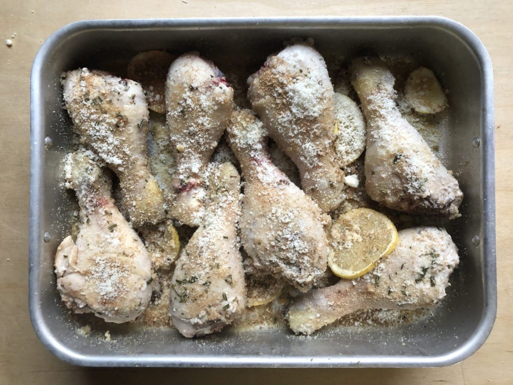 Preparo das coxas de frango ao forno