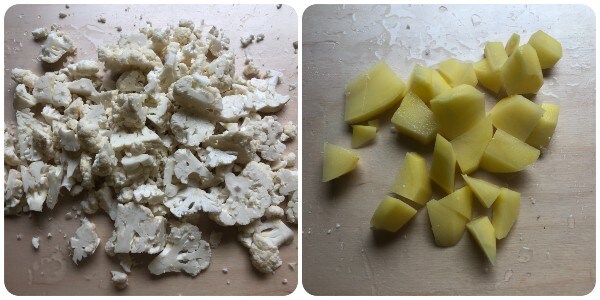 Deixá-la fritar por alguns instantes, em seguida adicionar a couve-flor, os cogumelos e as batatas.
