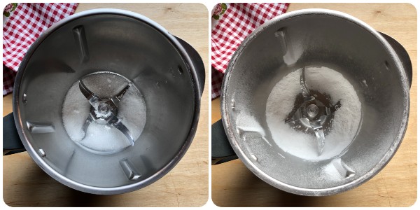 Colocar o açúcar no copo e pulverizá-lo: 10 seg. vel. 10.