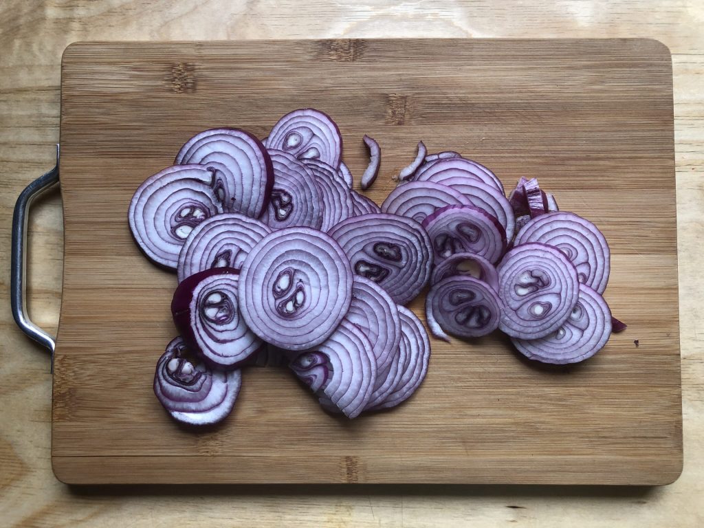 Em uma frigideira, derreter a manteiga junto com a folha de louro, depois adicionar as cebolas, uma generosa pitada de sal, uma pitada de pimenta preta e deixá-las murchar em fogo médio, mexendo de vez em quando. Levará cerca de 8/10 minutos.