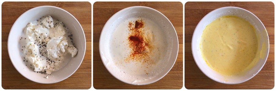 Em uma pequena tigela, misture a robiola com o leite, uma generosa pitada de sal e uma abundante moída de pimenta-do-reino preta. Em seguida, adicione o açafrão e incorpore-o perfeitamente.