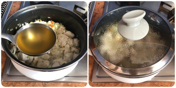 Regue com uma concha de caldo quente, depois coloque a tampa, abaixe o fogo e cozinhe por 20 minutos.