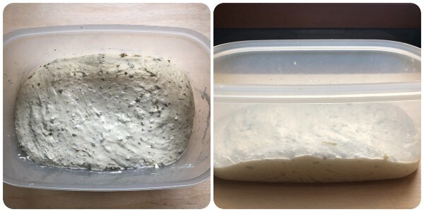 Eu preparei a massa desta focaccia com azeitonas na batedeira, mas você também pode fazer à mão diretamente no recipiente que usará para descansar e levedar.