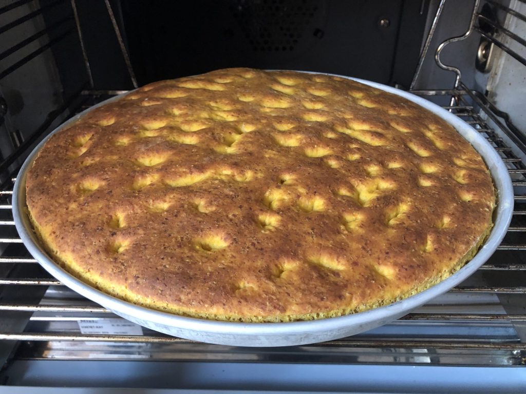 Retire a focaccia do forno e deixe-a esfriar levemente antes de saborear. Bom apetite! Paola.