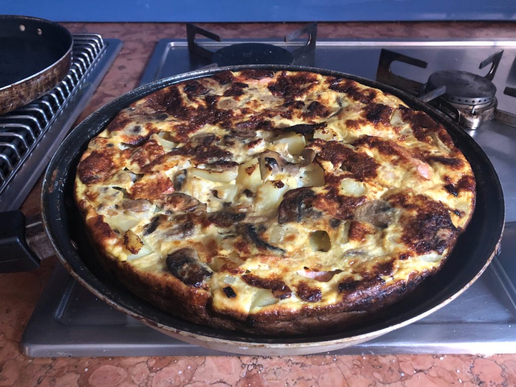 Se você está a fim de um prato único generoso e saboroso, então precisa experimentar esta frittata alta que combina sabores do mar, do bosque e da horta. Pois é… porque entre os ingredientes estão camarões suculentos, delicados champignons, batatas macias e alho-poró. É macia, rica, ideal para servir morna ou em temperatura ambiente e perfeita para saborear em família ou com amigos. E então…? O que está esperando? Aqueça a frigideira e mãos à obra.