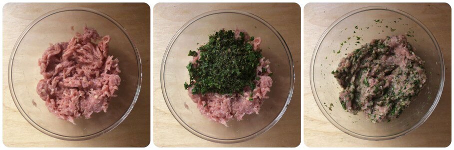 Remova a crosta do pão caseiro e pique-o, depois adicione à mistura de carne.