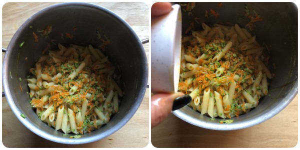Pouco antes do término do cozimento, adicione os legumes na panela do macarrão.