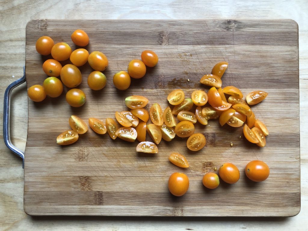 Delicioso, muito fácil de preparar e até um pouco surpreendente, este molho de tomatinhos amarelos foi aprovado por todos. A cor também é bonita, um pouco incomum, mesmo que hoje em dia os tomatinhos amarelos não sejam mais tão difíceis de encontrar. Eu os ganhei de presente da minha amiga Ivana; eles vêm diretamente da sua horta, então você pode imaginar a qualidade deles. Mas se você não conseguir encontrá-los, prepare este molho tranquilamente com os comuns tomatinhos vermelhos. Ficará igualmente bom.