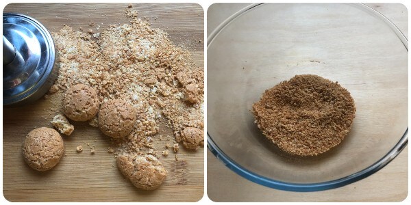 Esmigalhe os amaretti e coloque-os em uma tigela média.