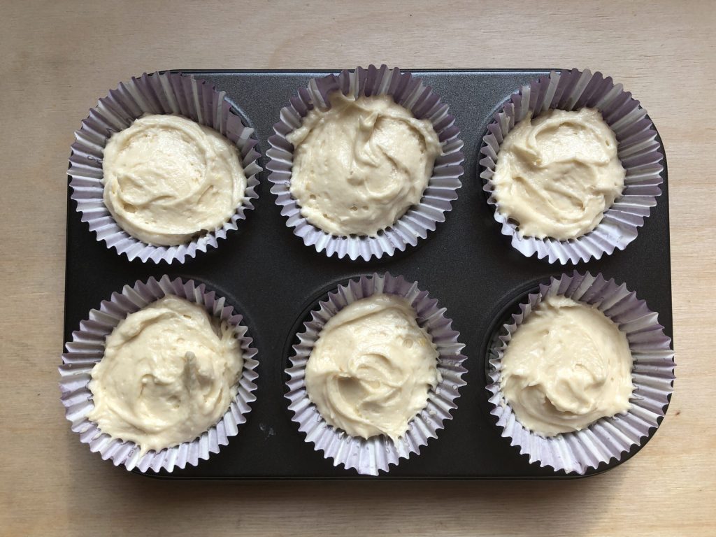 Divida a massa obtida em 12 forminhas, nivelando a superfície com uma colherzinha.
