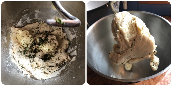 Preparei a massa desses pãezinhos de alecrim na batedeira, mas você pode usar qualquer outro mixer ou até mesmo fazer à mão, misturando os ingredientes primeiro em uma tigela e depois na bancada.