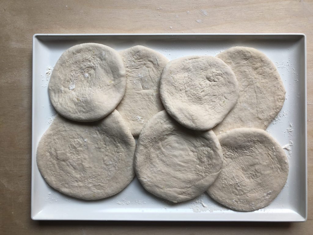 Coloque os pãezinhos de cebola em uma bandeja enfarinhada.