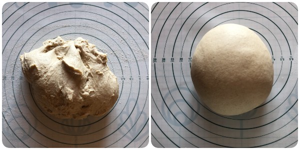 • Após o tempo de fermentação, trabalhe levemente a massa com as mãos para desinflá-la, depois forme um pão redondo e achate-o levemente.