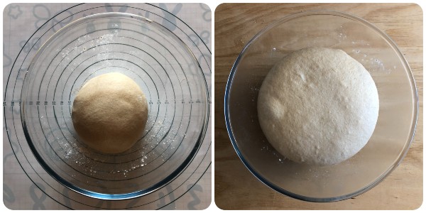 • Coloque a bola dentro de uma tigela grande levemente enfarinhada, cubra com filme plástico e deixe fermentar em um lugar quente e protegido de correntes de ar até dobrar de volume. O tempo depende da temperatura ambiente e pode variar de 2 a 3 horas.