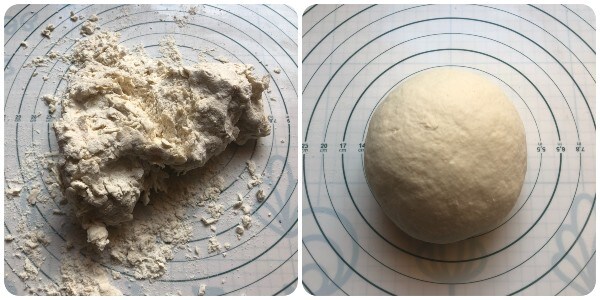 Em seguida, transfira a mistura para a superfície de trabalho ligeiramente enfarinhada e trabalhe-a energicamente e por um longo tempo com as mãos até obter uma massa lisa e homogênea. Modele uma bola. Se a massa estiver muito dura, adicione mais algumas colheres de sopa de água, adicionando aos poucos. A absorção dos líquidos depende muito da qualidade da farinha.