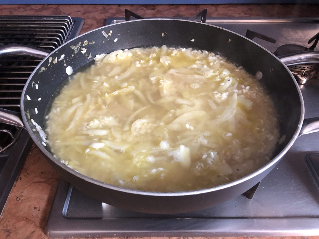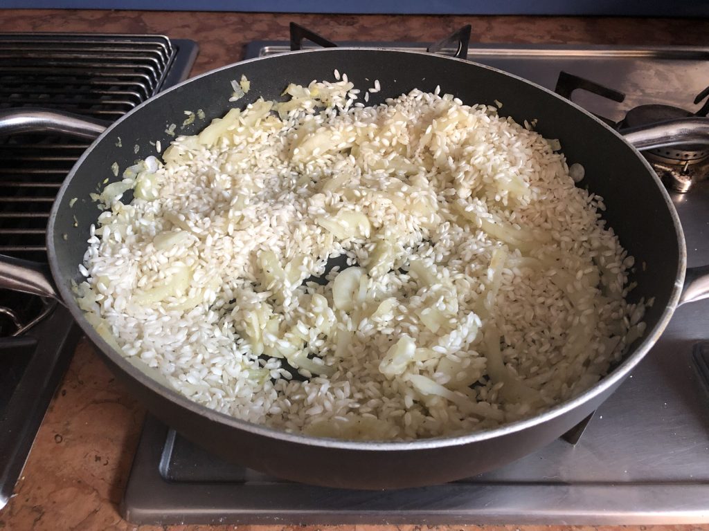 Preparo do risoto com erva-doce