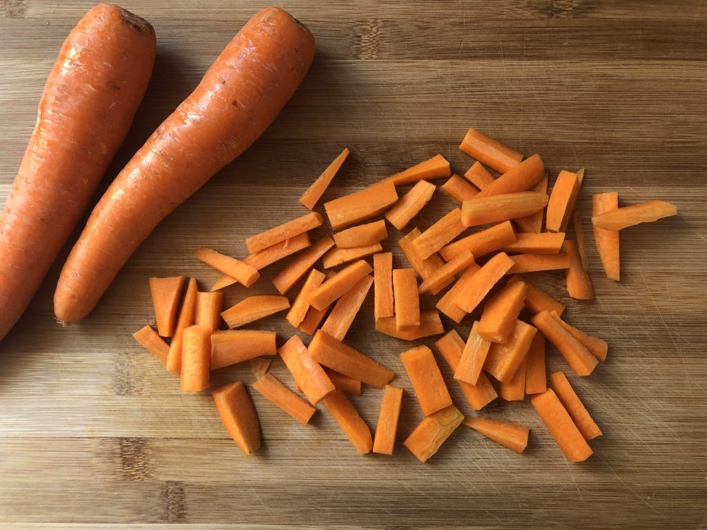 Corte as pontas das cenouras, raspe, lave e seque-as com papel toalha.