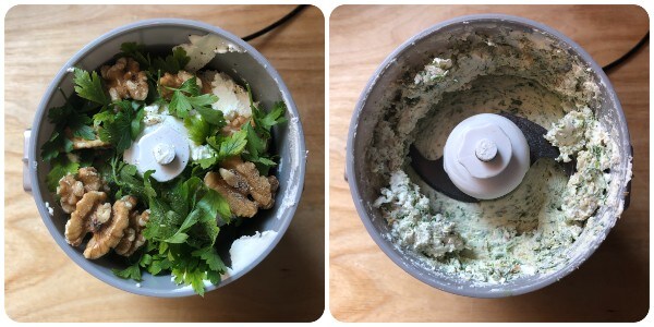 Colocá-las em um processador de alimentos com a robiola, nozes, uma pitada generosa de sal, uma boa dose de pimenta-do-reino moída e processar várias vezes até obter um creme homogêneo.