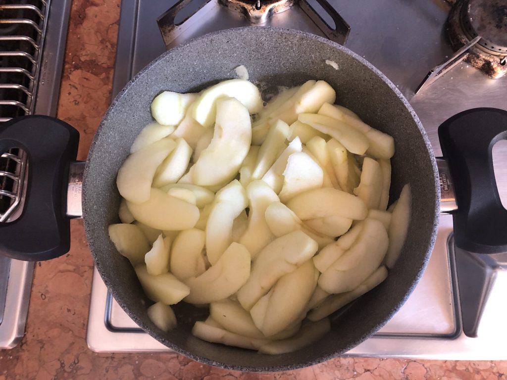 Coloque-as em uma caçarola, regue com o suco de maçã, dê uma rápida misturada e leve ao fogo.