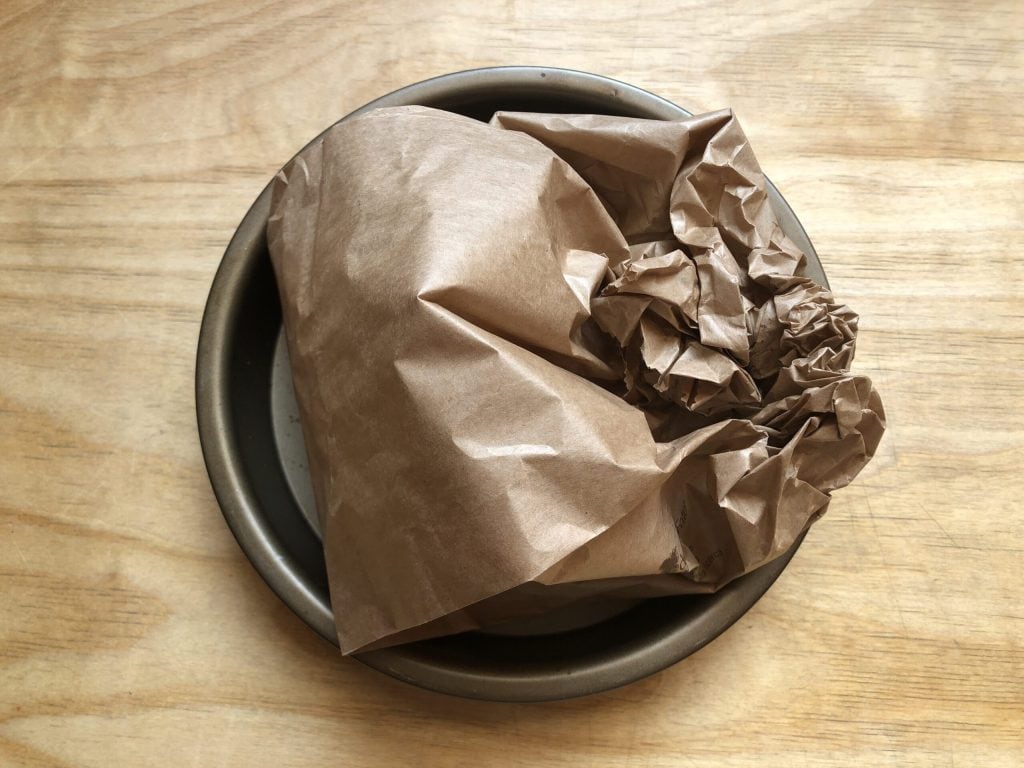 Transfira para um saco de papel (perfeito aquele de pão) e deixe esfriar (assim será muito mais fácil descascá-lo).