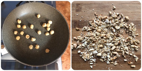 Em uma frigideira, torre as avelãs sem qualquer tempero, depois pique-as grosseiramente com uma faca. Reserve-as pois serão usadas como decoração final do prato.