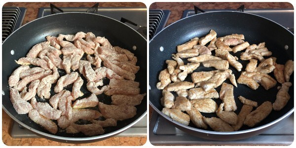 Preparação das tirinhas de frango ao limão