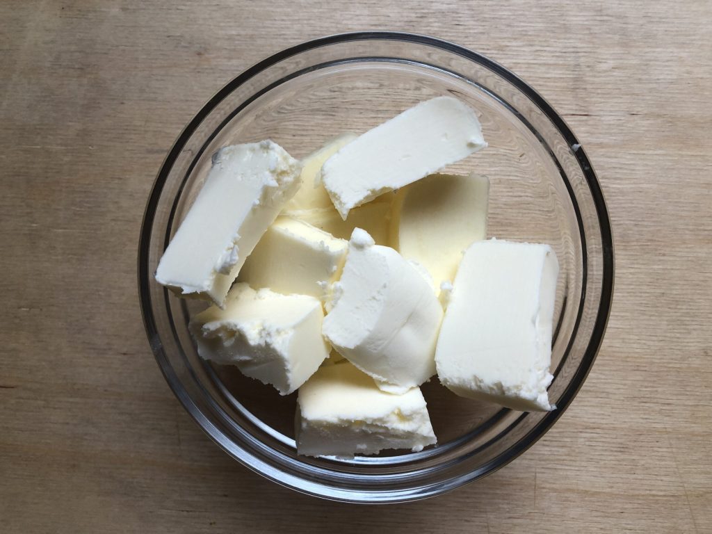 Antes de começar, corte a manteiga em pedaços e deixe-a amolecer à temperatura ambiente.