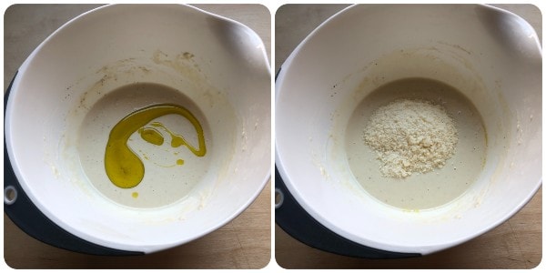 Adicione também o azeite e, quando tiver uma massa lisa e cremosa, incorpore 40 g de queijo ralado.