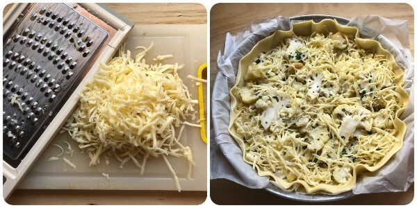 • Rale o queijo fontina em julienne com um ralador de furos grossos e distribua sobre a couve-flor tentando preencher eventuais buracos que sobraram.