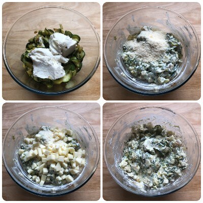 Neste ponto, adicione a ricota e mexa pela primeira vez. Depois, adicione o queijo ralado e a scamorza em cubos e misture bem todos os ingredientes. Ajuste o sal e a pimenta, se necessário.