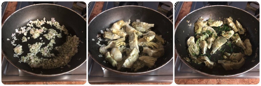 Em uma frigideira, aqueça algumas colheres de azeite e refogue a cebola. Depois, adicione os corações de alcachofra ainda congelados, tempere com sal a gosto e cozinhe por cerca de dez minutos em fogo baixo, mexendo frequentemente. Após o cozimento, perfume com salsa picada finamente.