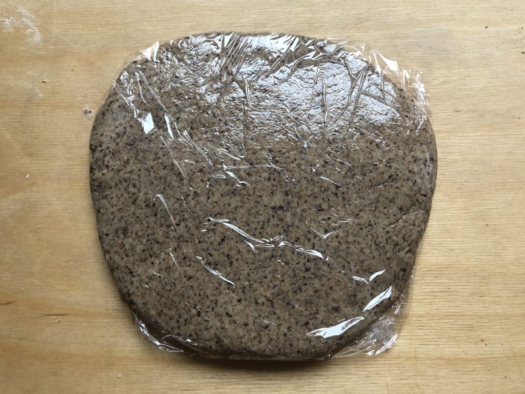 • Transfira a massa para a bancada, trabalhe-a por alguns instantes com as mãos, depois forme um pão, envolva-o em filme plástico e deixe descansar em temperatura ambiente por pelo menos meia hora.
