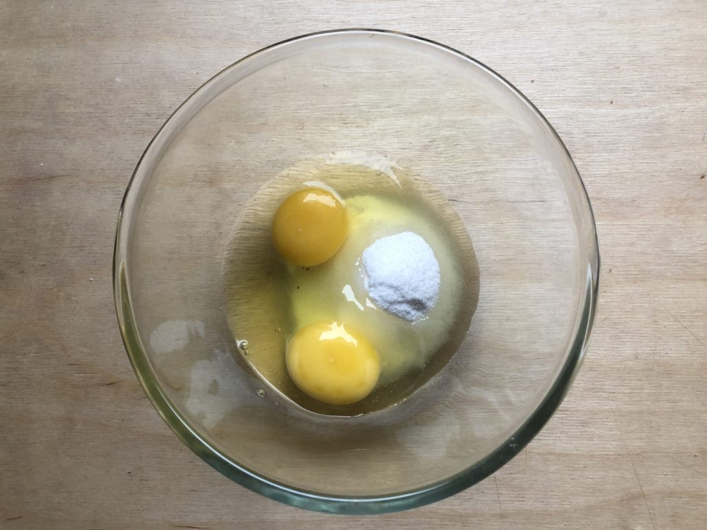 • Com a batedeira elétrica, bata os ovos com o açúcar até obter uma mistura clara e espumosa.