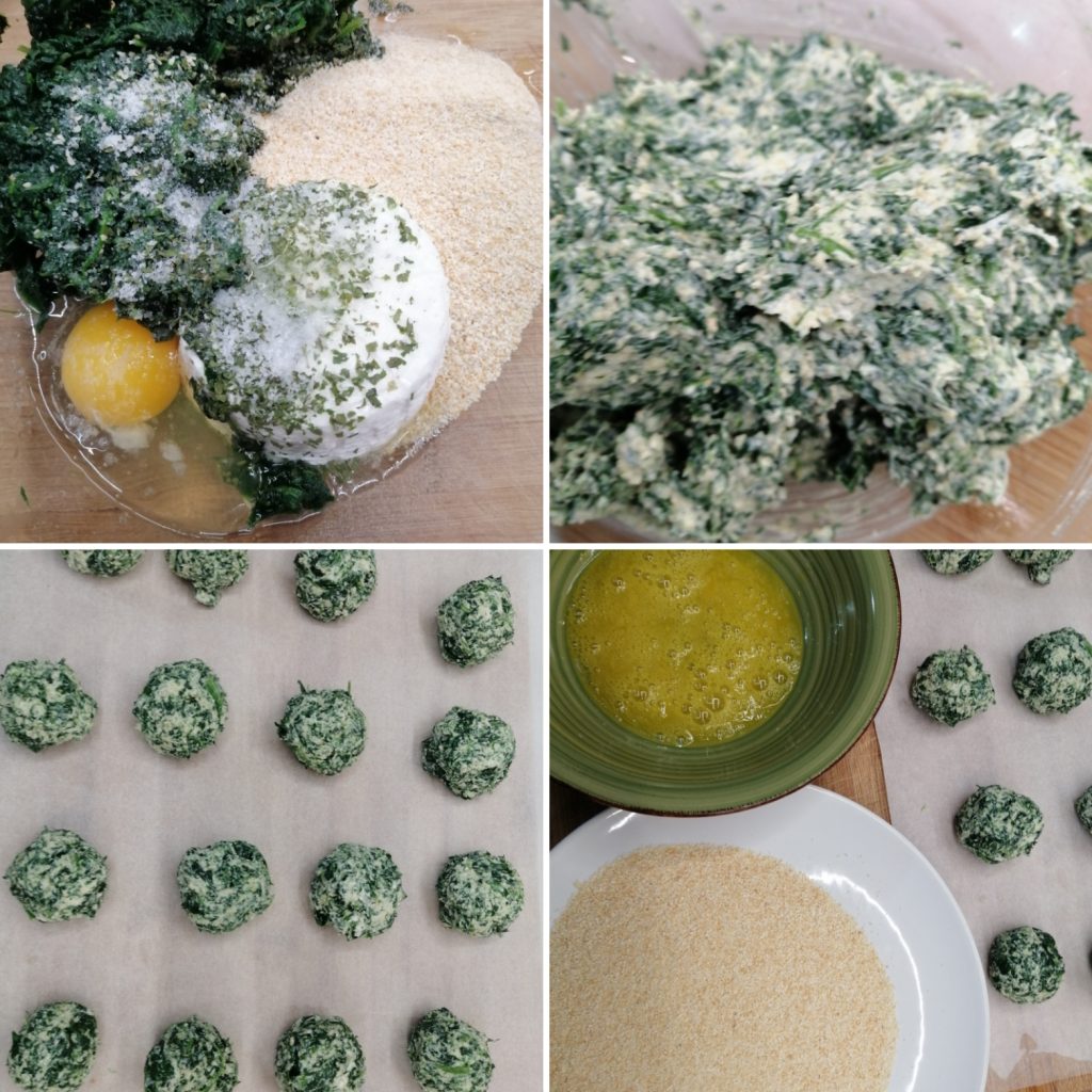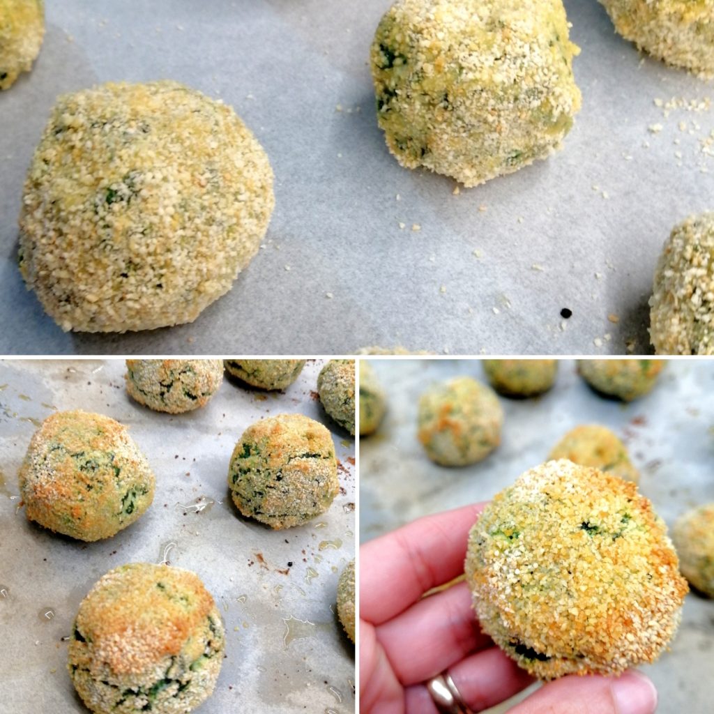As almôndegas de ricota e espinafre estão prontas, macias por dentro e crocantes por fora.