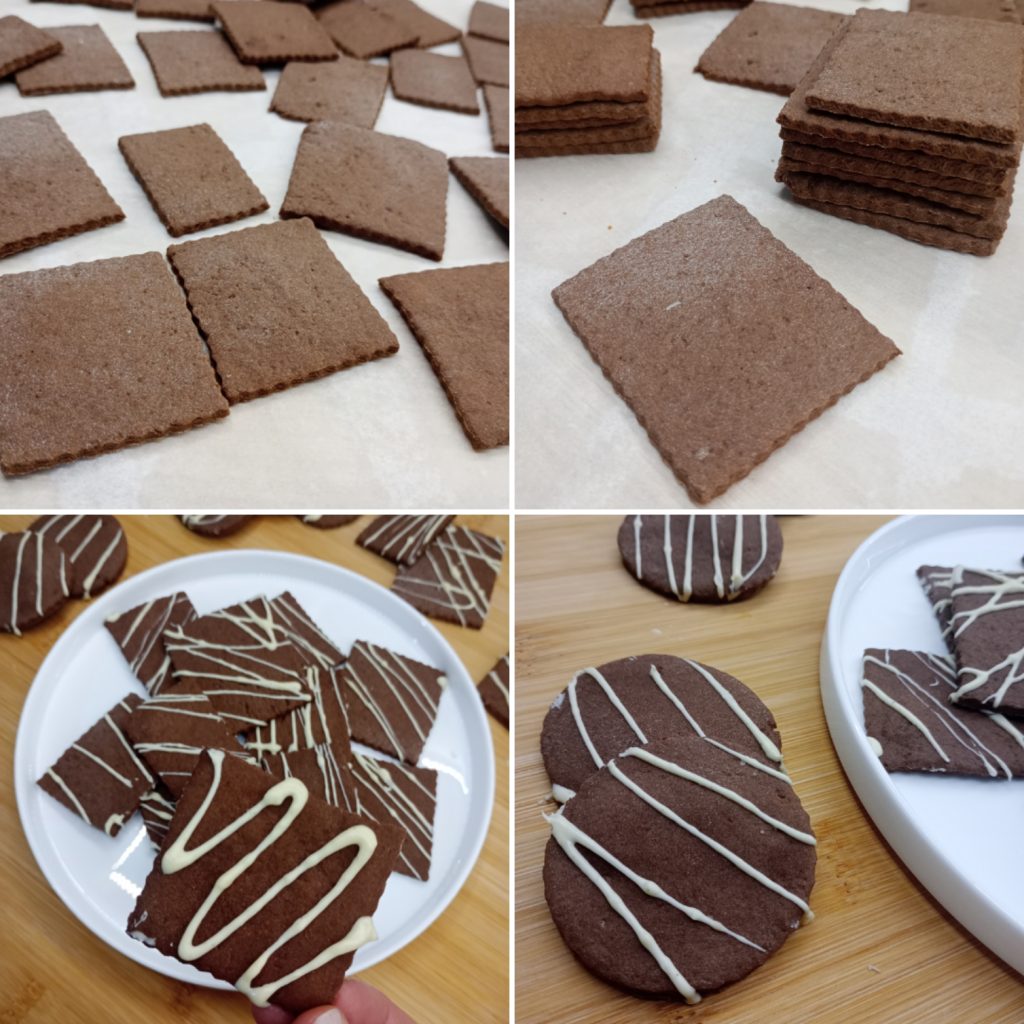 Eu enriqueci os biscoitos de cacau com chocolate branco derretido.