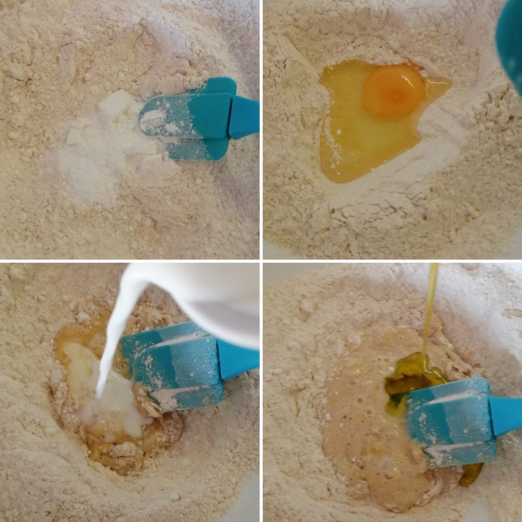 Em uma tigela, coloque a farinha, adicione o açúcar, o óleo, o leite, os ovos e o fermento, misture bem até a farinha peneirada ser absorvida lentamente.