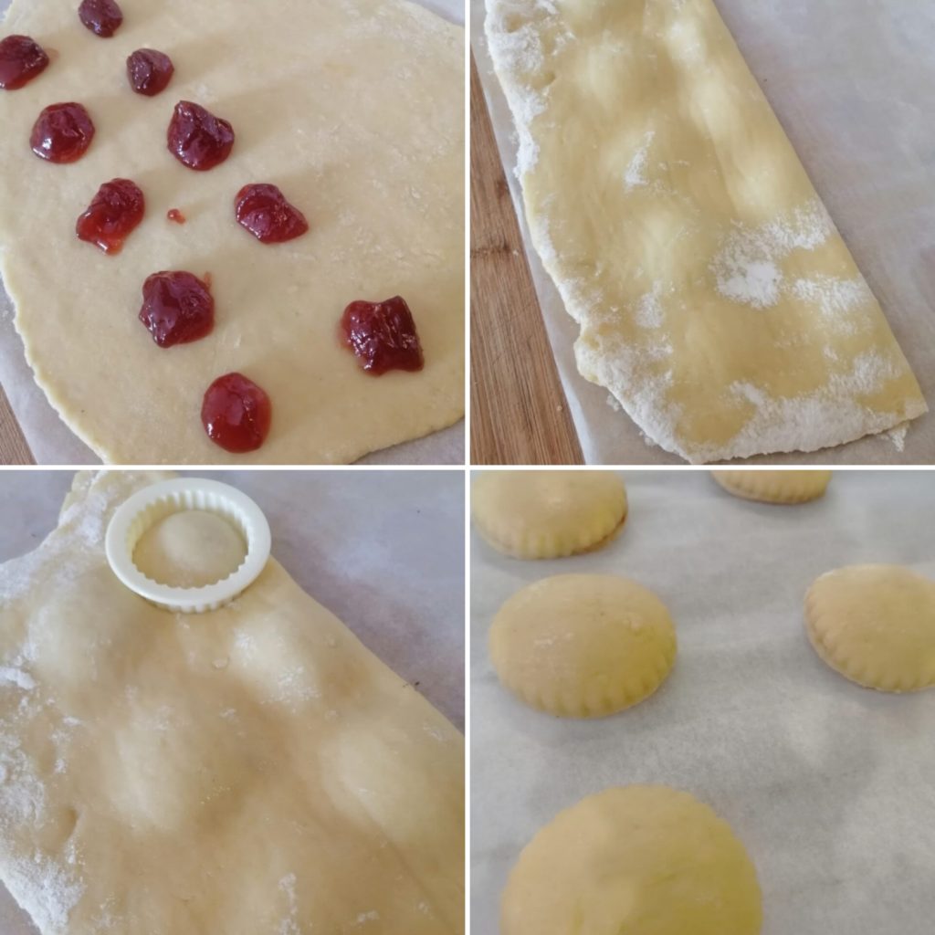 Faça os biscoitinhos com um cortador ou com um copo, será fácil identificar onde colocar o cortador para fazer o biscoito.
