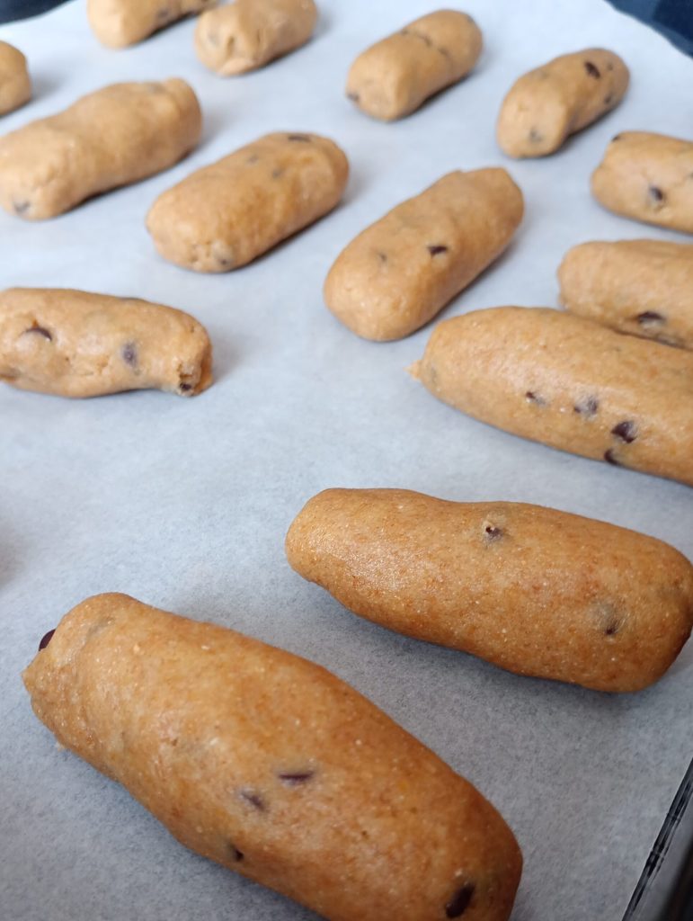 Com esses biscoitos para molhar é como voltar no tempo, os biscoitões de antigamente, aqueles bem gostosos que comíamos quando éramos crianças. Ótimos com leite, chá ou para acompanhar um café. Os biscoitos para molhar são exatamente o que você precisa para começar bem o dia. São muito friáveis graças à massa amanteigada, se conservados corretamente em uma lata ou em um pote de biscoitos, duram por muitos dias. São biscoitos muito simples que decidi enriquecer com gotas de chocolate amargo para dar um toque a mais de sabor.